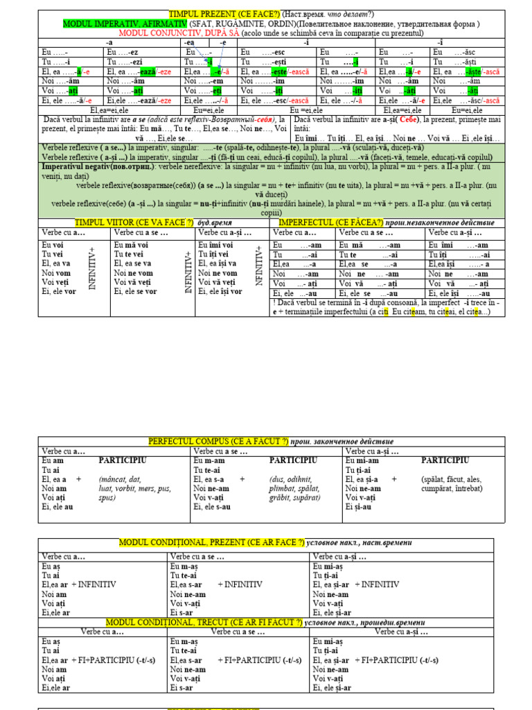 A FI(быть) A AVEA A STA A LUA A DA A MÂNCA A ÎNTÂRZIA A COPIA A TĂIA