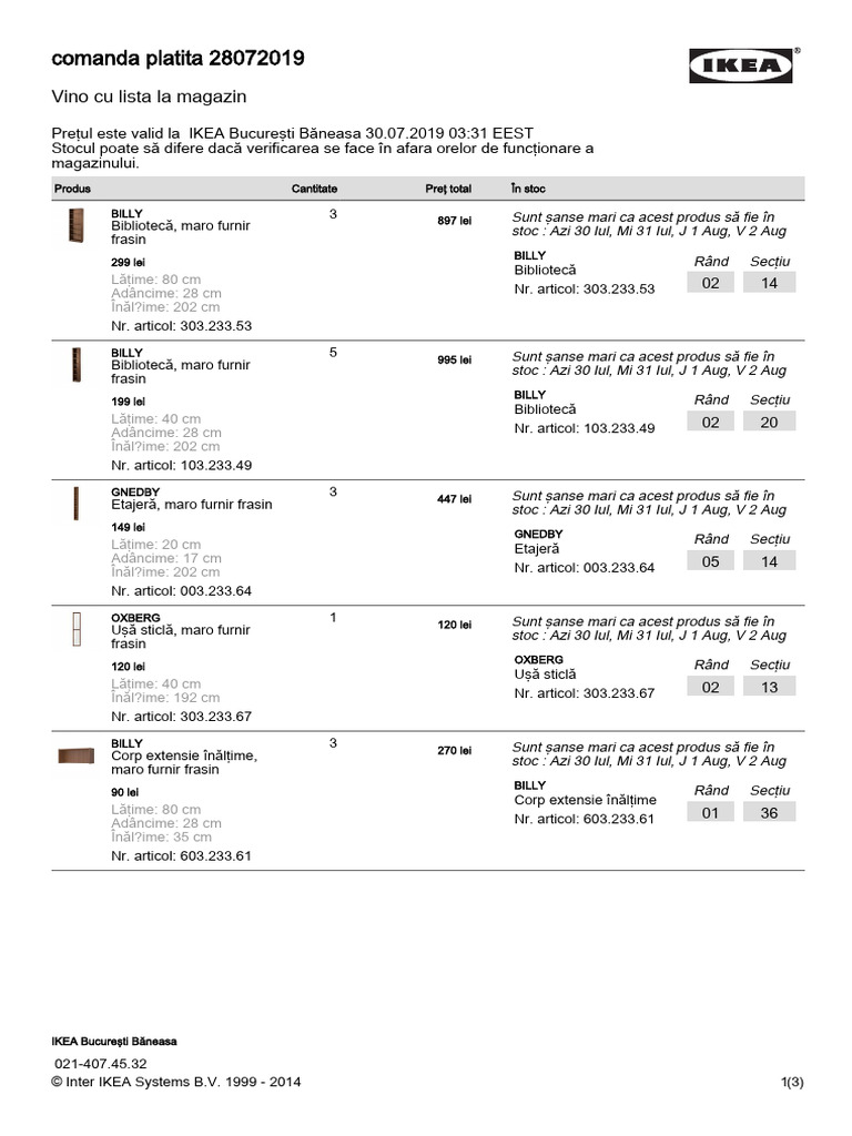 Preţul este valid la IKEA Bucureşti Băneasa 30.07.2019 03:31 EEST