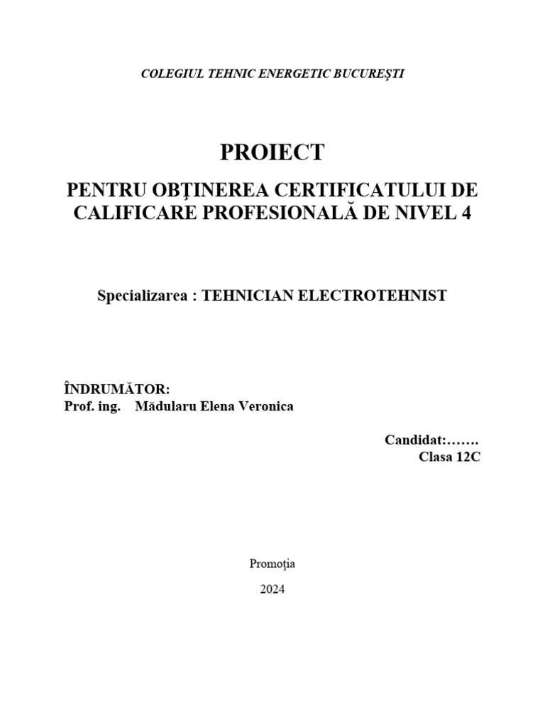 Specializarea : TEHNICIAN ELECTROTEHNIST