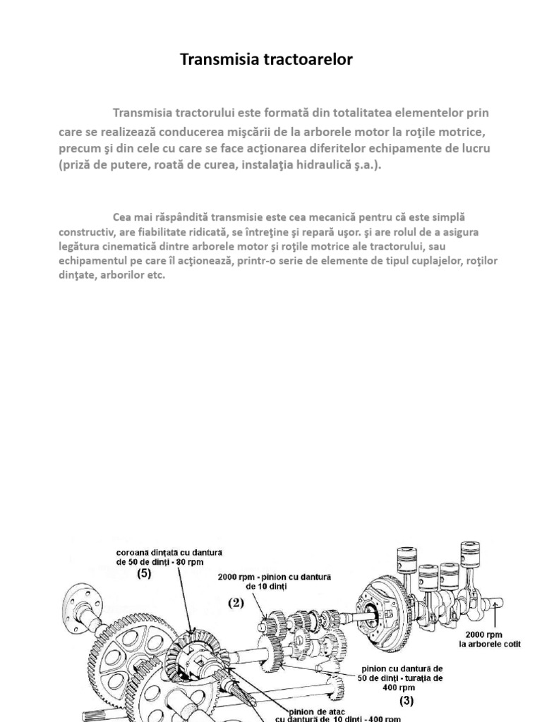 Transmisia tractorului este formată din totalitatea elementelor prin