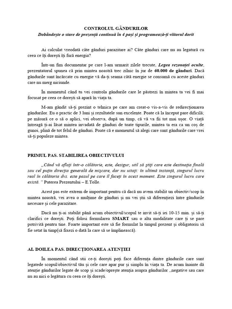 atenție gândurilor legate de scop și scade/oprește atenția asupra gândurilor ,,negative sau care