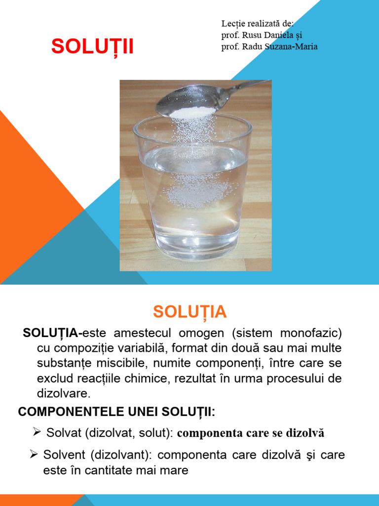 Solvat (dizolvat, solut): componenta care se dizolvă