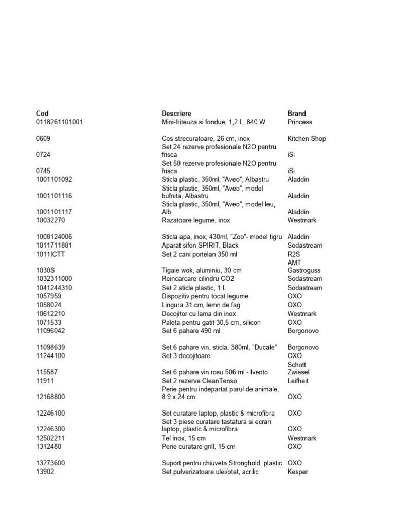 Cod Descriere Brand