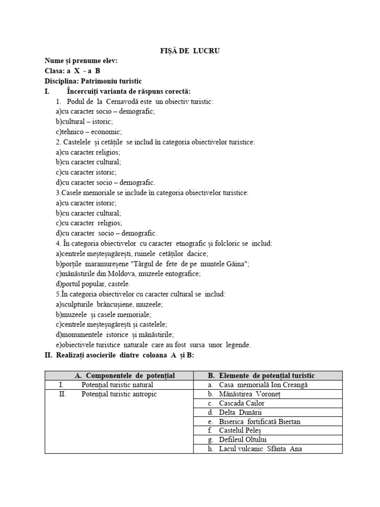 2. Castelele și cetățile se includ în categoria obiectivelor turistice: