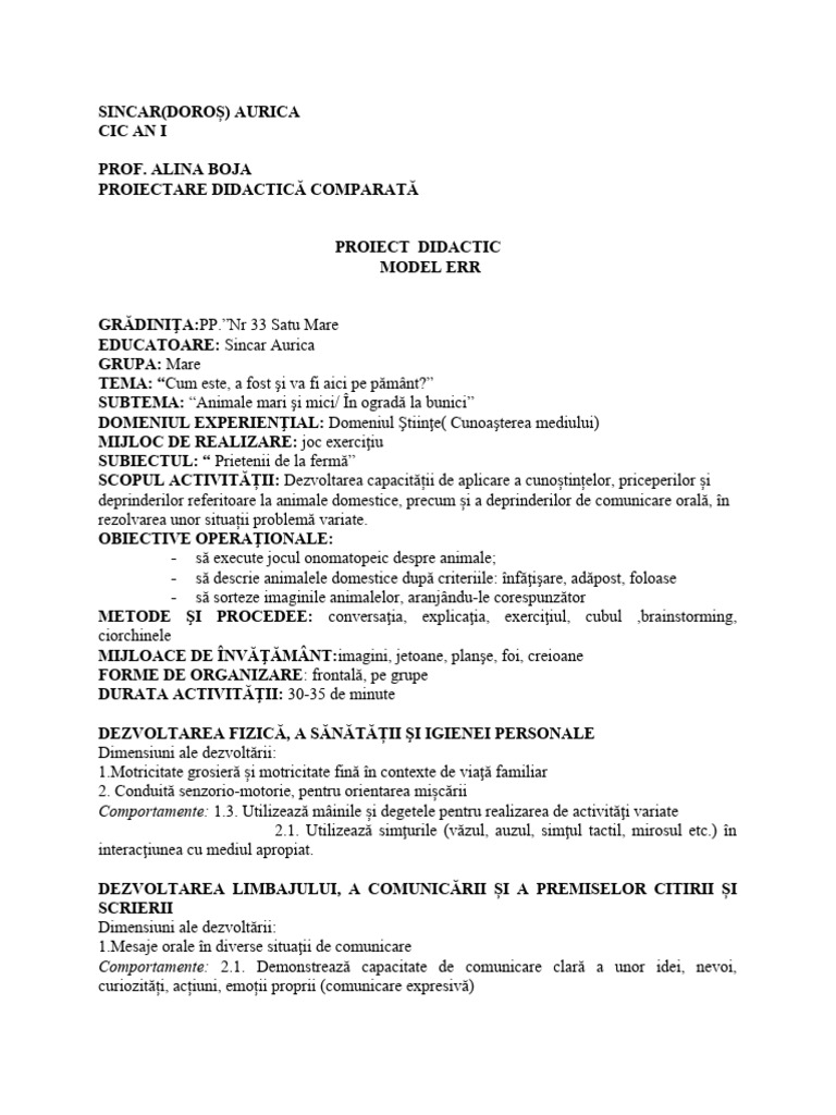 PROIECTARE DIDACTICĂ COMPARATĂ
