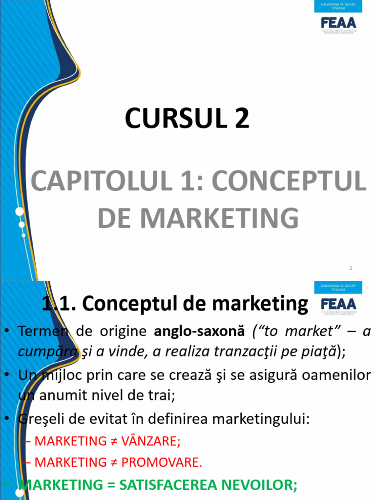 • Definiţiile marketingului pot fi grupate în 3 categorii
