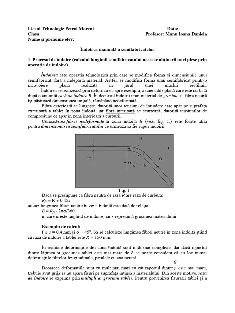1. Procesul de îndoire (calculul lungimii semifabricatului necesar obținerii unei piese prin