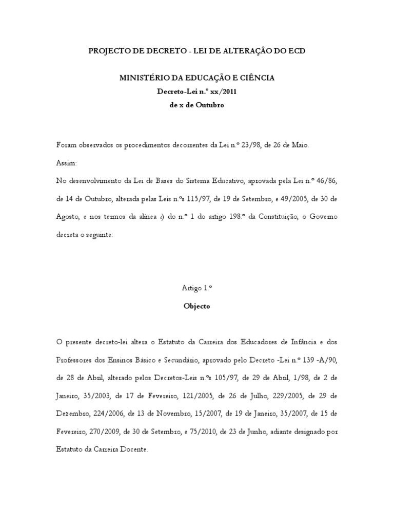 PROJECTO DE DECRETO - LEI DE ALTERAO DO ECD MINISTRIO DA EDUCAO E CINCIA Decreto-Lei n.