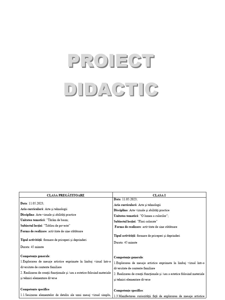 Aria curriculară: Arte şi tehnologii Disciplina: Arte vizuale şi abilităţi practice