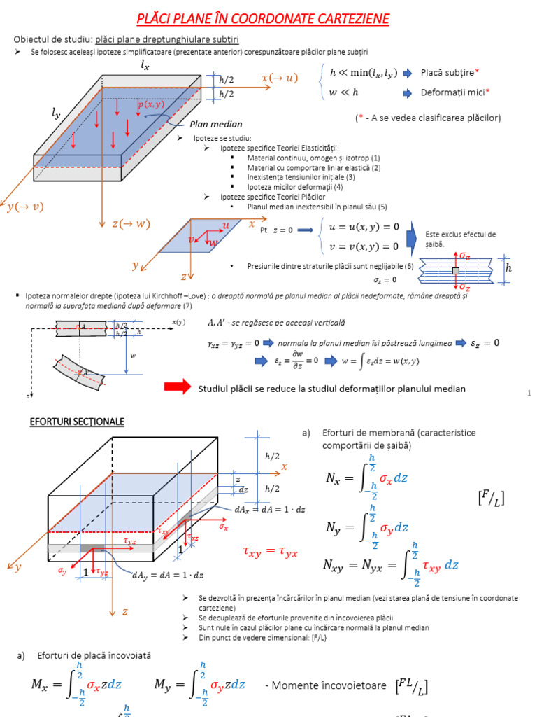 ➢ Se folosesc aceleași ipoteze simplificatoare (prezentate anterior) corespunzătoare plăcilor plane subțiri