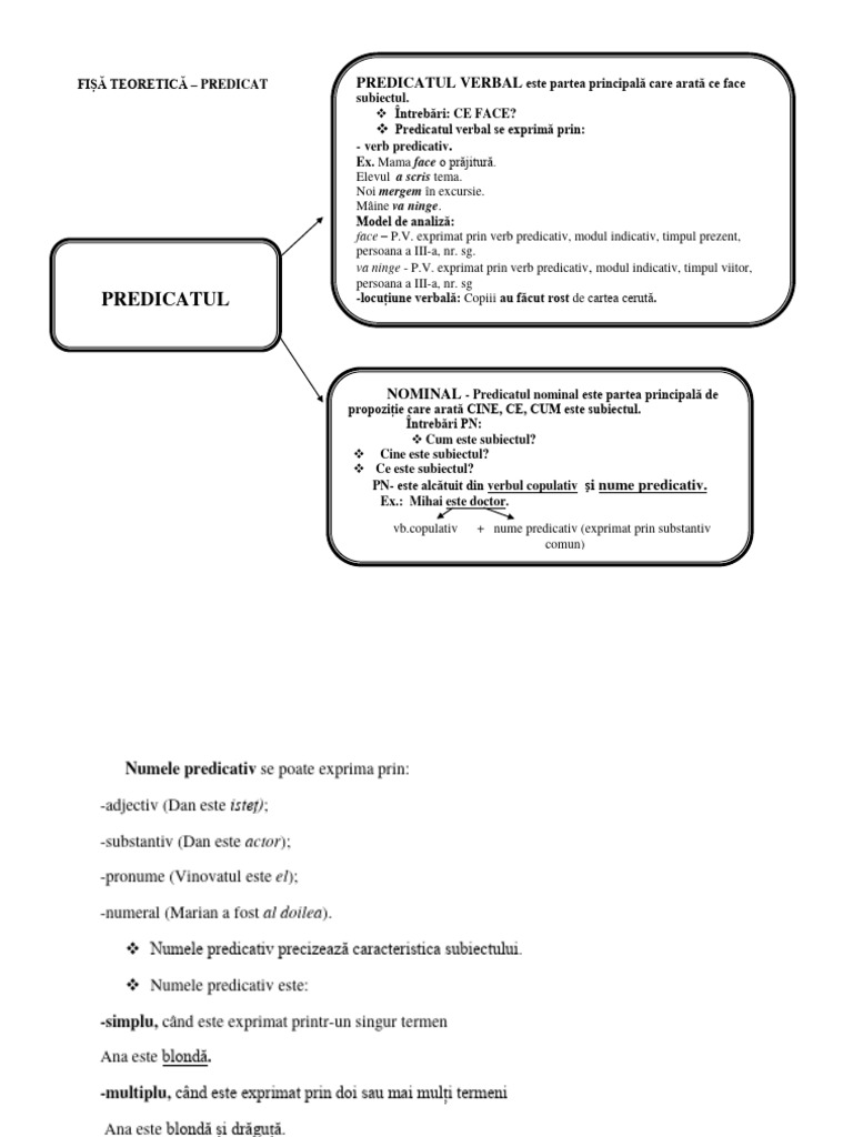 FIȘĂ TEORETICĂ – PREDICAT PREDICATUL VERBAL este partea principală care arată ce face