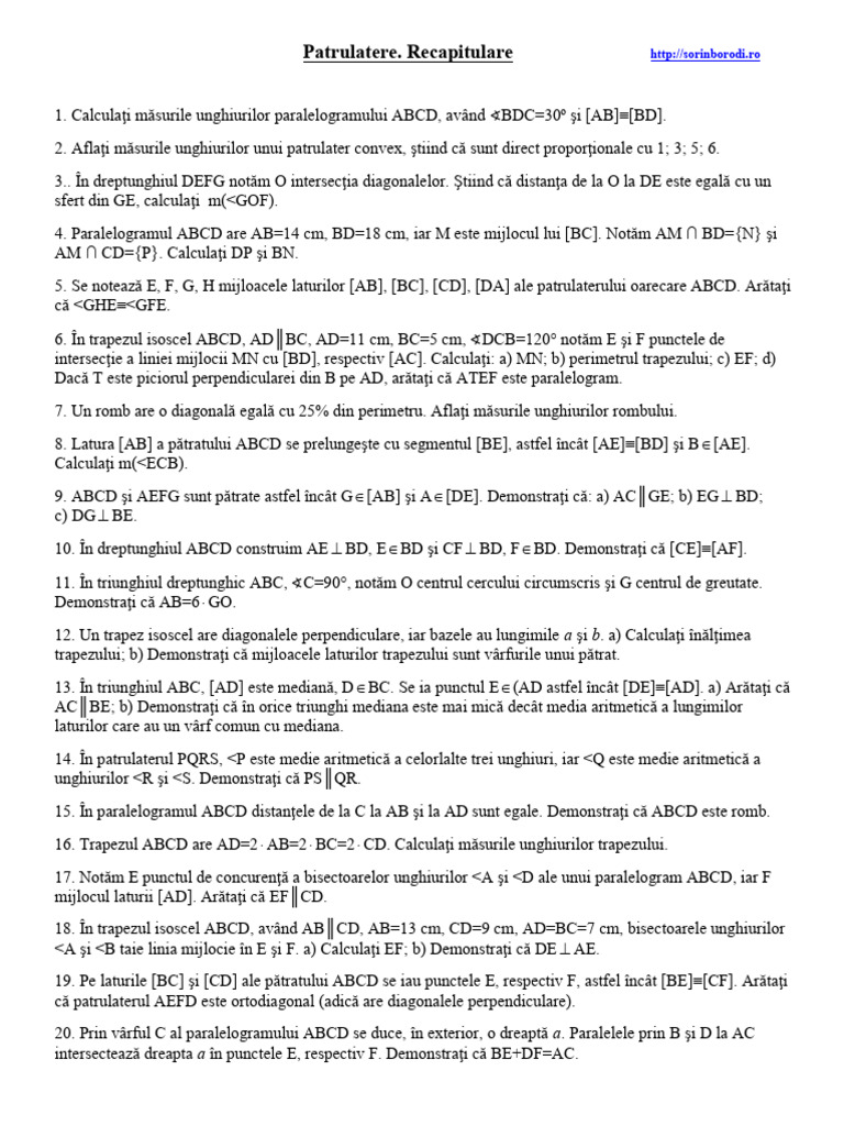 2. Aflaţi măsurile unghiurilor unui patrulater convex, ştiind că sunt direct proporţionale cu 1; 3; 5; 6.
