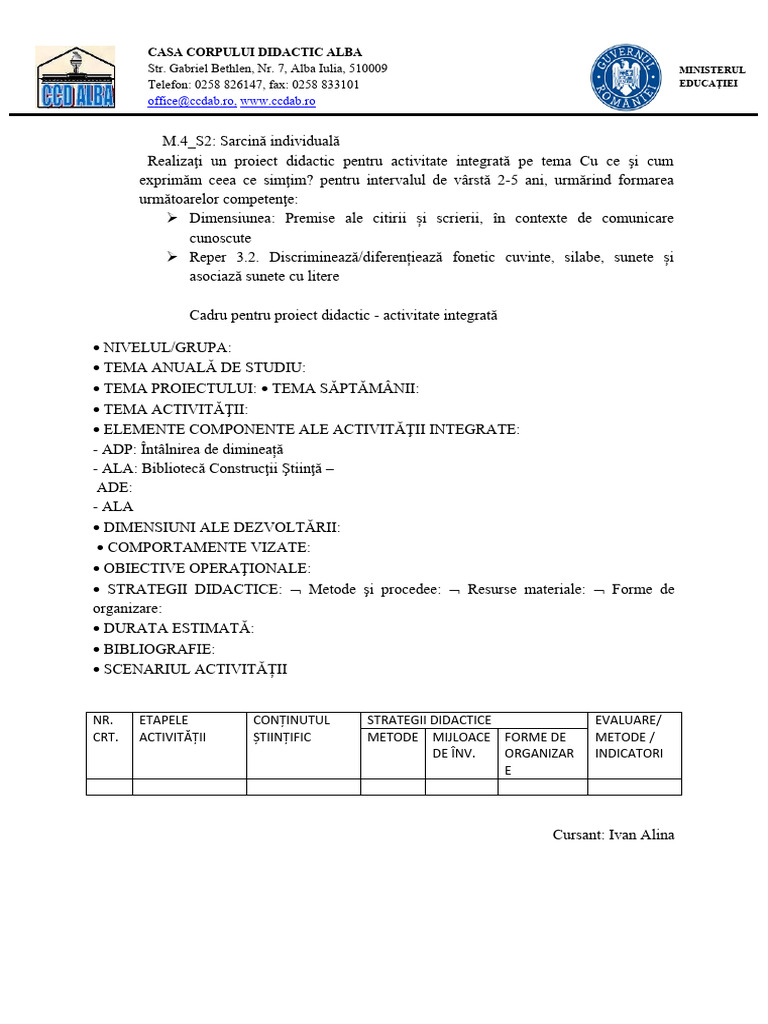 Realizaţi un proiect didactic pentru activitate integrată pe tema Cu ce şi cum