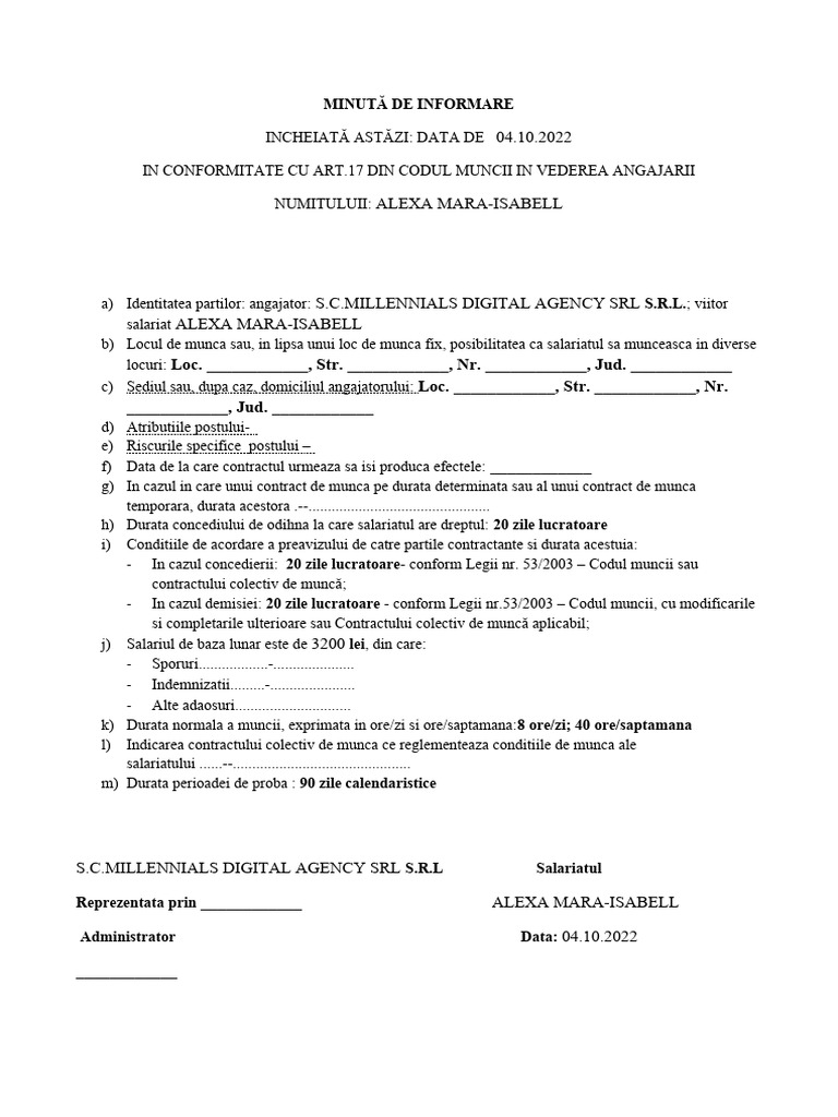 a) Identitatea partilor: angajator: [Link] DIGITAL AGENCY SRL S.R.L.; viitor