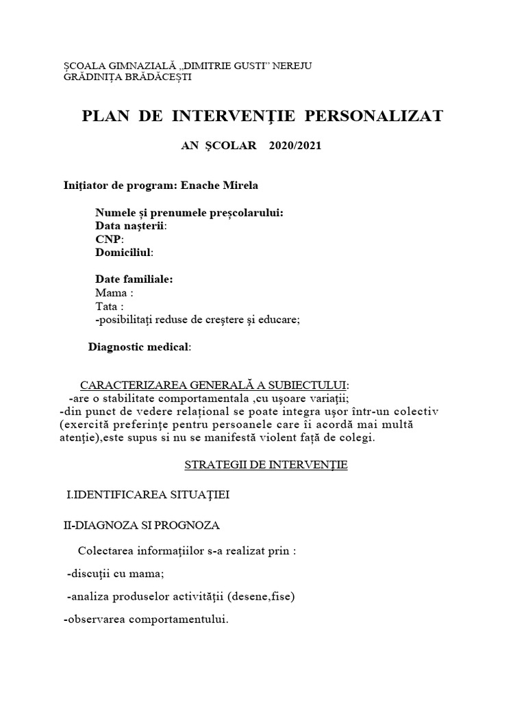 PLAN DE INTERVENŢIE PERSONALIZAT
