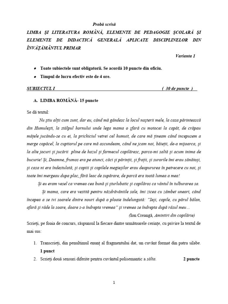 punct; utilizarea limbii literare-1 punct; abilități de analiză și de argumentare- 1 punct;