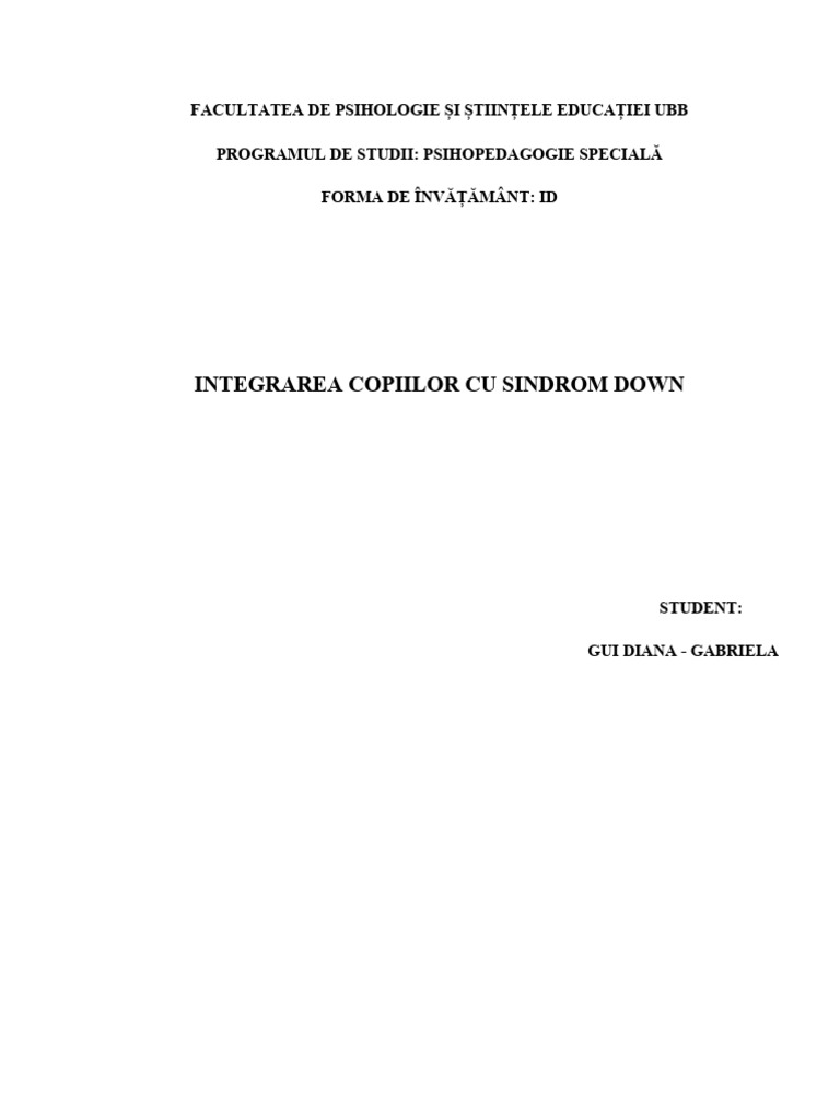 unor modalități de integrare a copiilor cu sindrom Down și soluții de diminuare a diferitelor