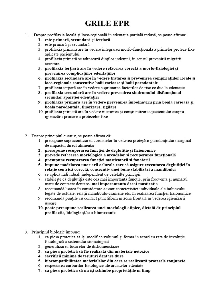 5. Principiile tratamentului edentației parțiale: 6 raspunsuri corecte Burlui cap 9,cuprins