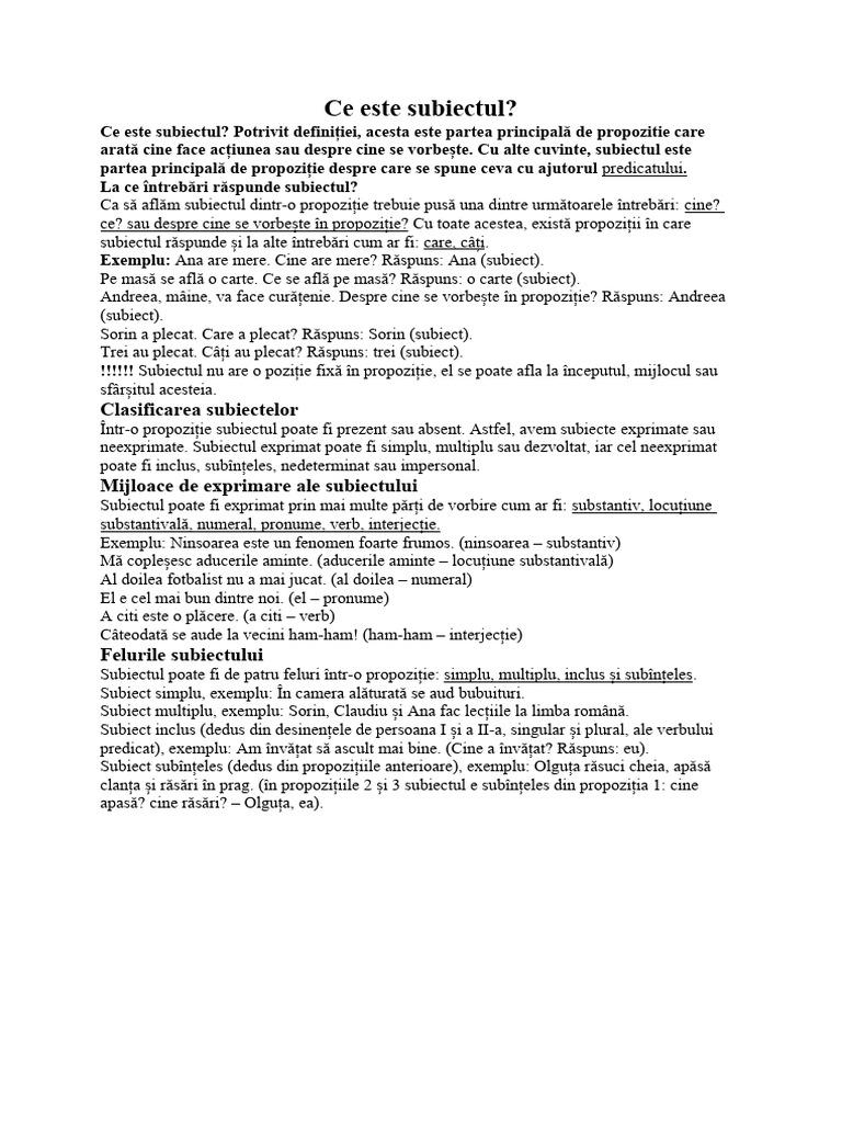 !!!!!! Subiectul nu are o poziție fixă în propoziție, el se poate afla la începutul, mijlocul sau