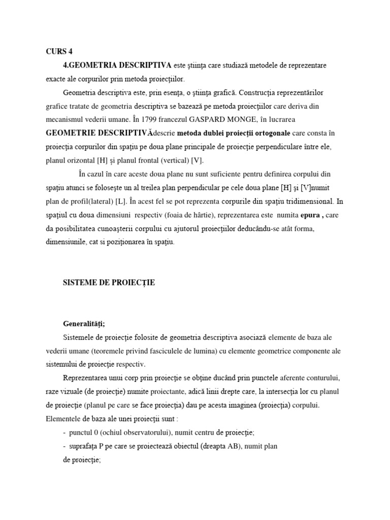 grafice tratate de geometria descriptiva se bazează pe metoda proiecţiilor care deriva din