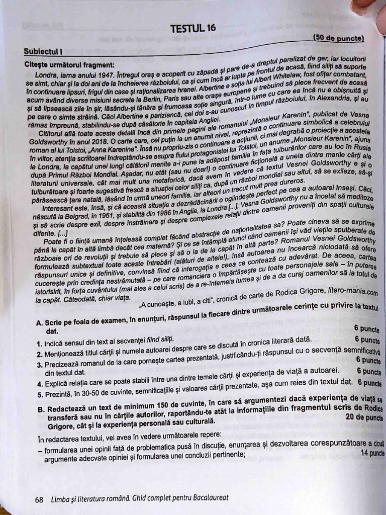 Jn vederea aco irli punctajulul pentru redactare, rispunsul trebule sl albi minimum 50 de cuvlnte fl si