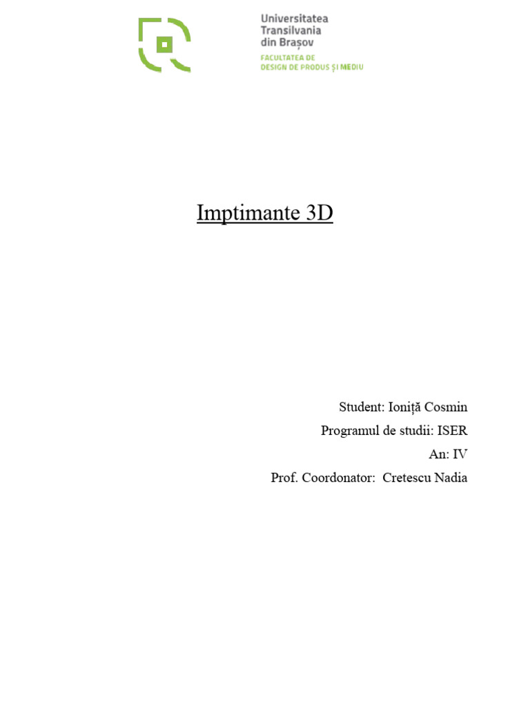 Imprimarea 3d reprezintă un procedeu prin care un obiect tridimensional este