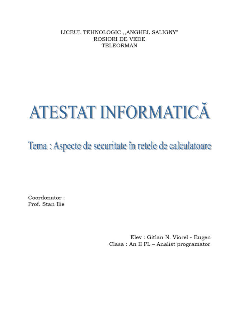 Aspecte de securitate în retele de calculatoare