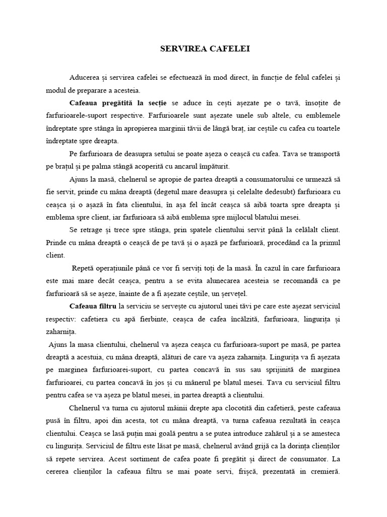 clientului. Ceașca se lasă puțin mai goală pentru a se putea introduce zahărul și a se amesteca