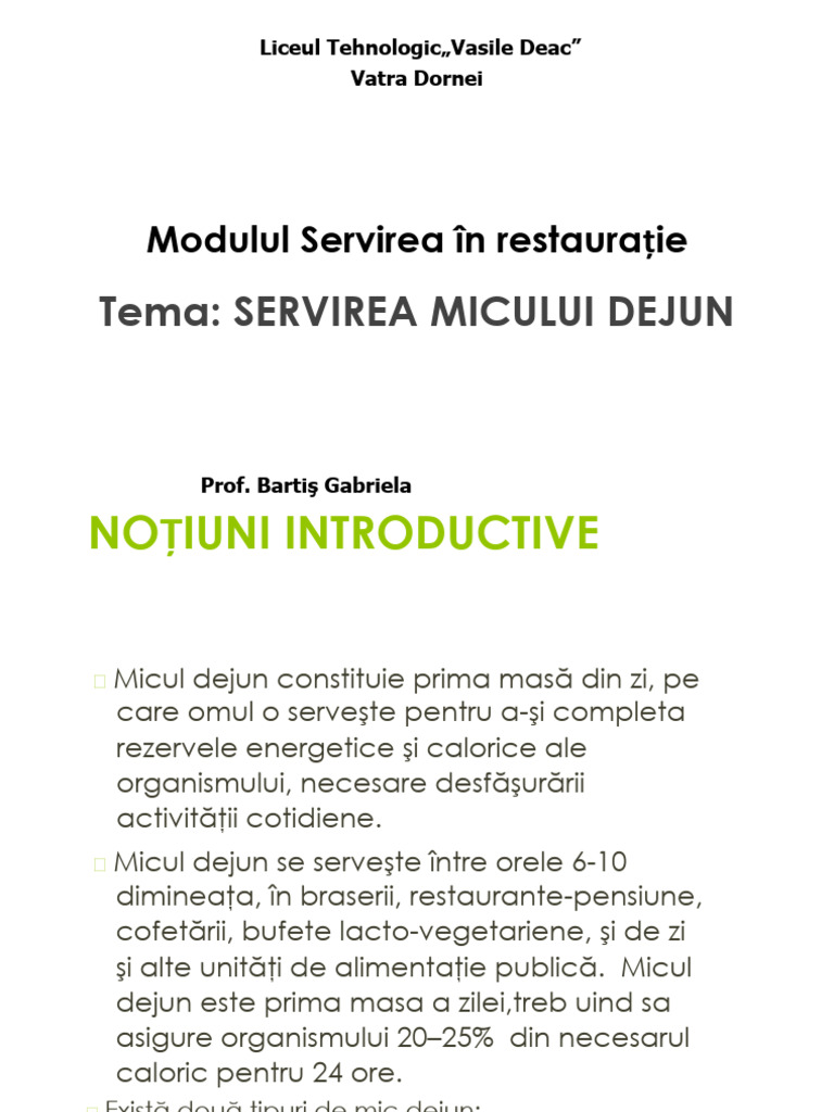 În componenţa meniurilor pentru micul dejun pot fi incluse