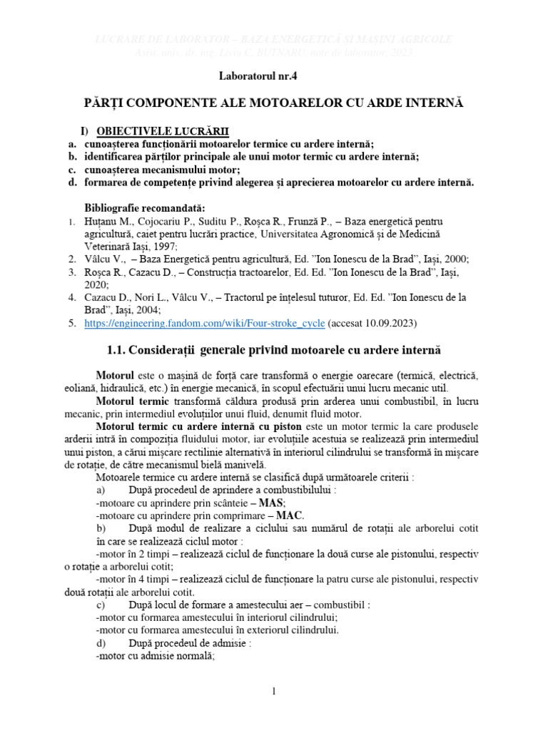 LUCRARE DE LABORATOR – BAZA ENERGETICĂ ȘI MAȘINI AGRICOLE