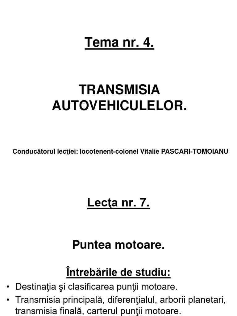 • 1. Studierea practică construcţiei punţilor motoare din faţă şi