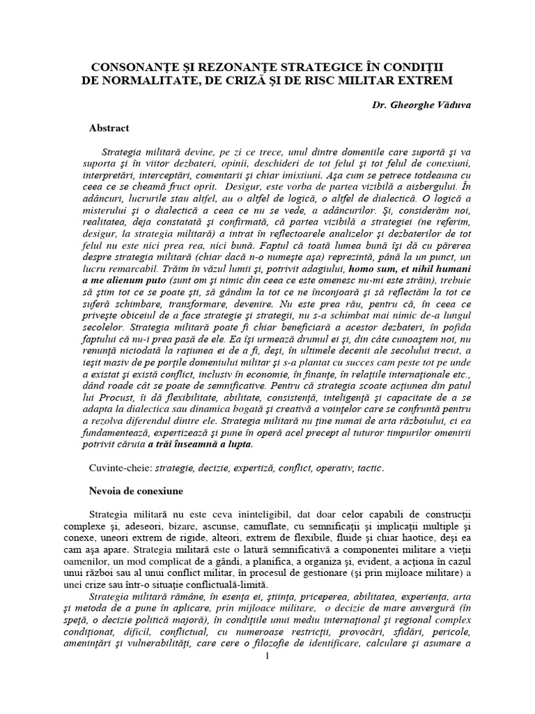 Schema nr. 1 Consonanţe şi rezonanţe strategice politice şi militare decizionale şi
