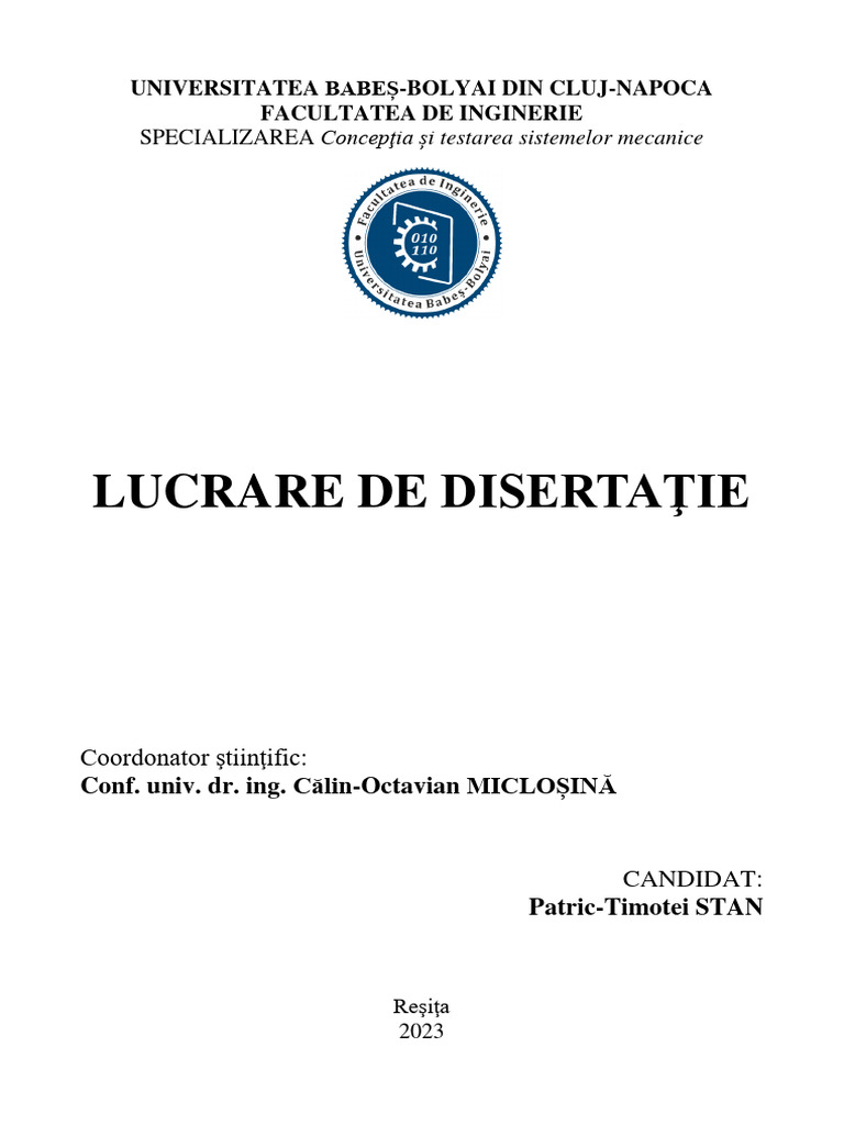UniversitSlii Babeg-Bolyai, in sesiunea iulie 2023 , sub indrumarea d-lui conf. dr. ing. Cilin-Octavian