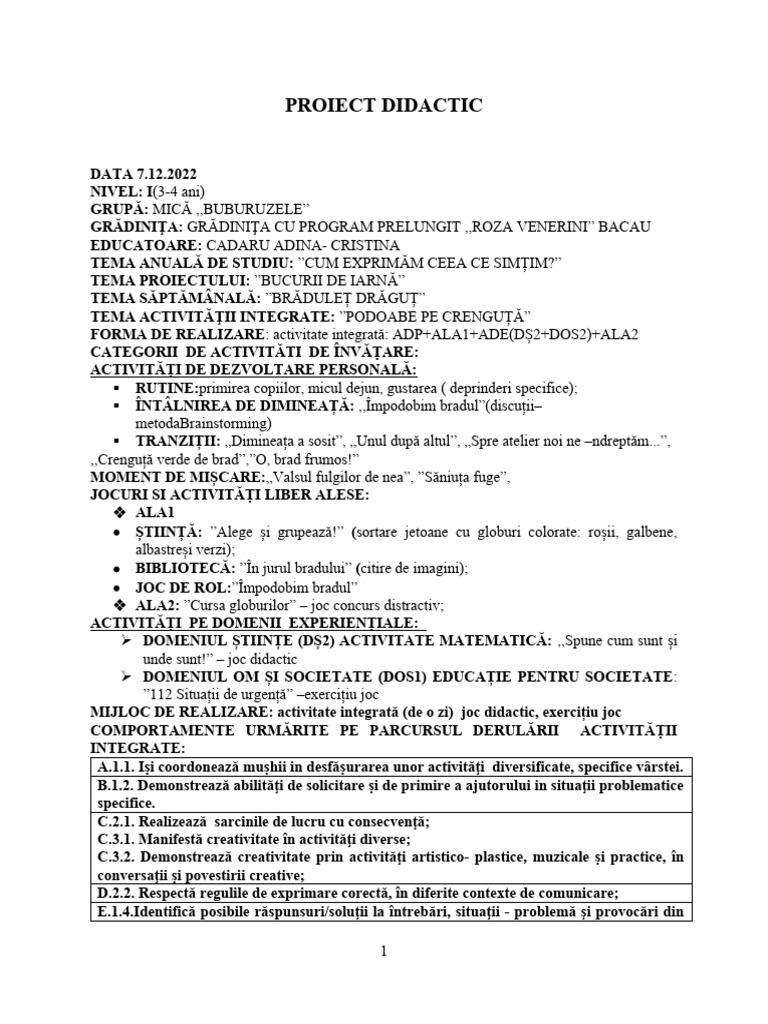 PROIECT DIDACTIC