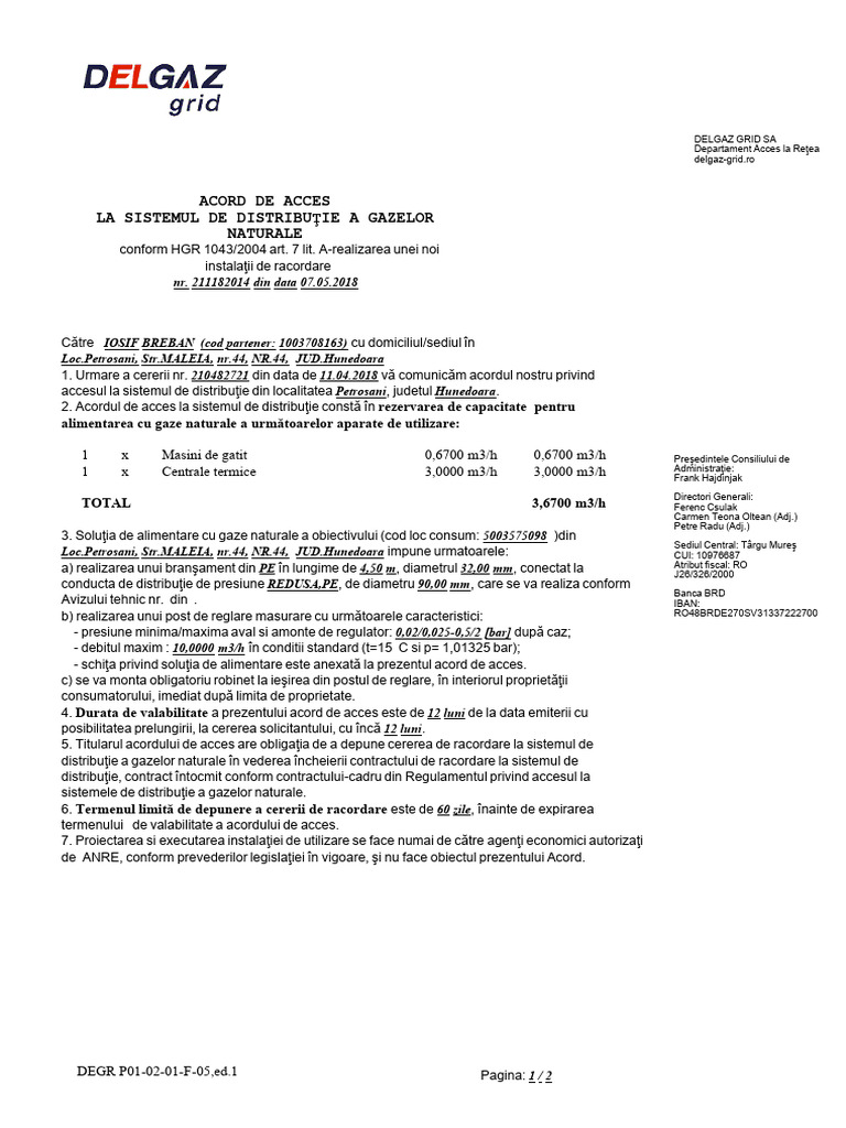 1. Urmare a cererii nr. 210482721 din data de 11.04.2018 vă comunicăm acordul nostru privind