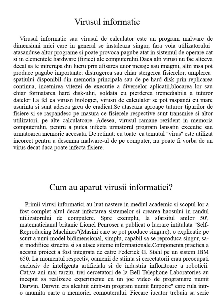 Virusul informatic sau virusul de calculator este un program malware de