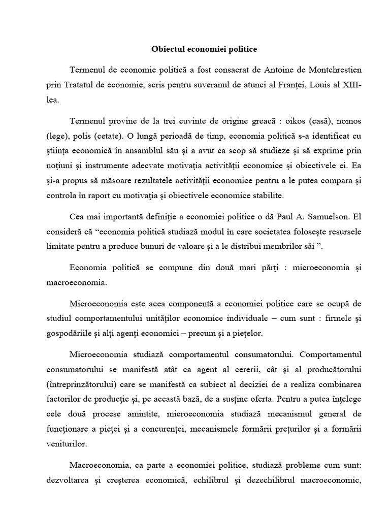 Obiectul economiei politice