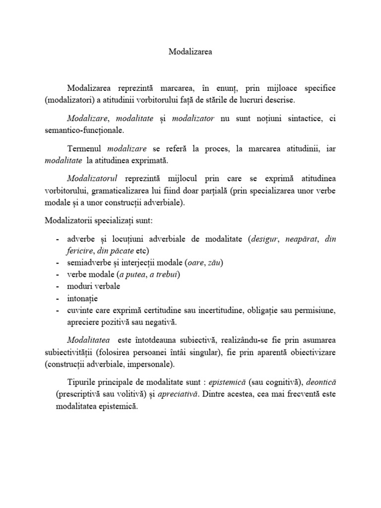 Exprimă gradul de obligativitate sau permisivitate al unui fapt enunțat,