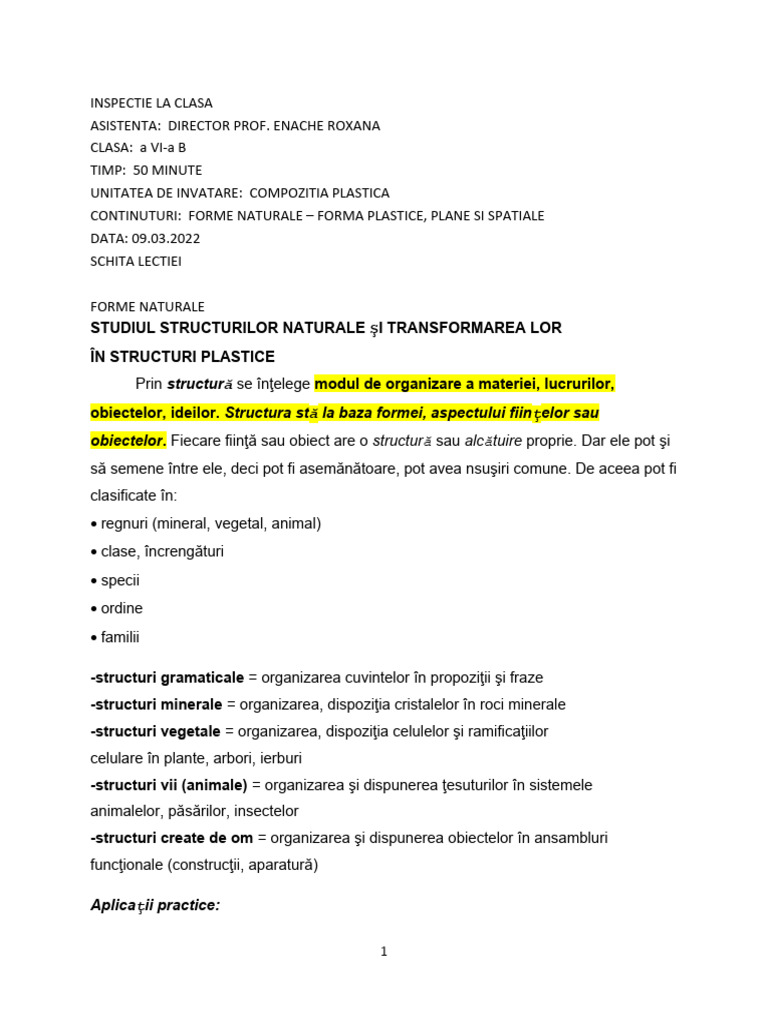 CONTINUTURI: FORME NATURALE – FORMA PLASTICE, PLANE SI SPATIALE