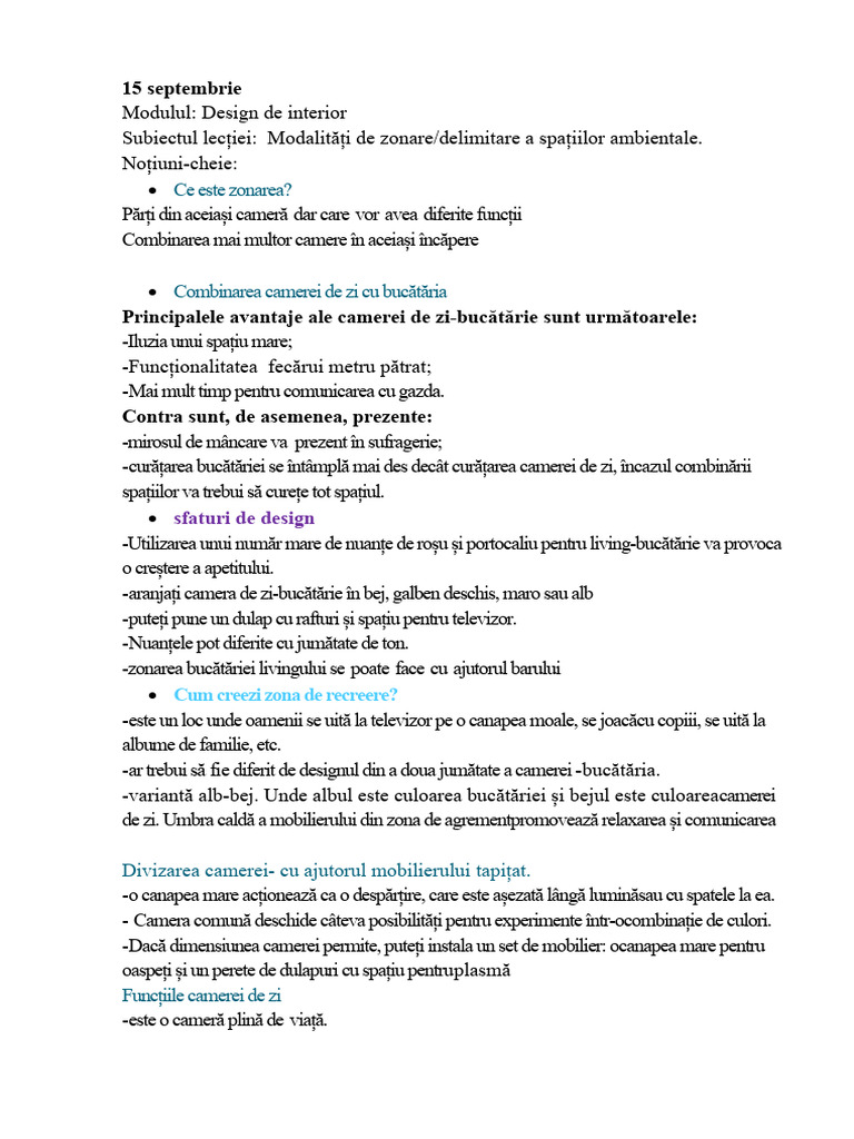 Subiectul lecției: Modalități de zonare/delimitare a spațiilor ambientale.