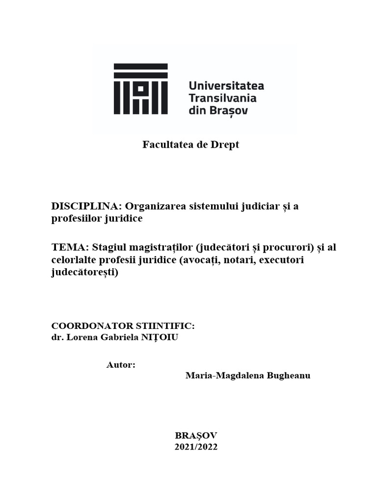 avocatură. În ultimul an de stagiu, cursanții vor efectua stagii de practică și la alte