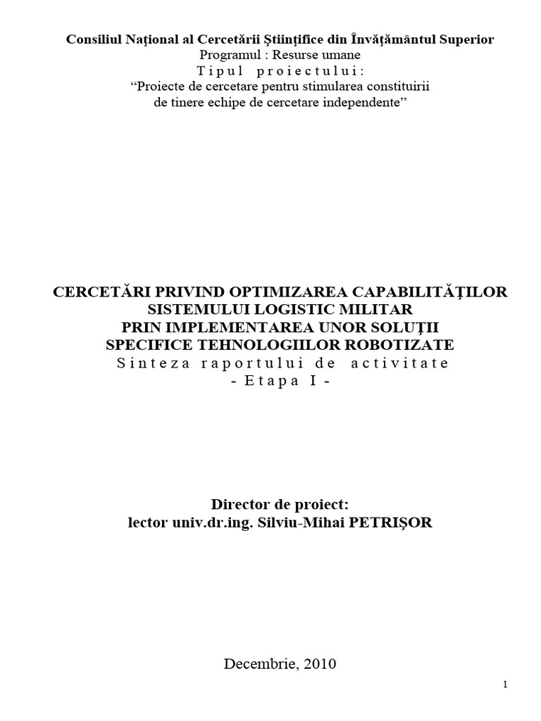 automatica etc, care sǎ potenţeze la nivelul ȋntregului sistem logistic militar, creşterea eficienţei şi