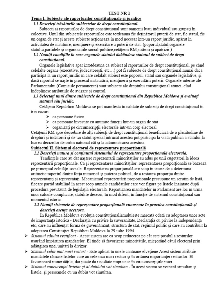 Subiectul I. Relaţii constituţionale şi juridice