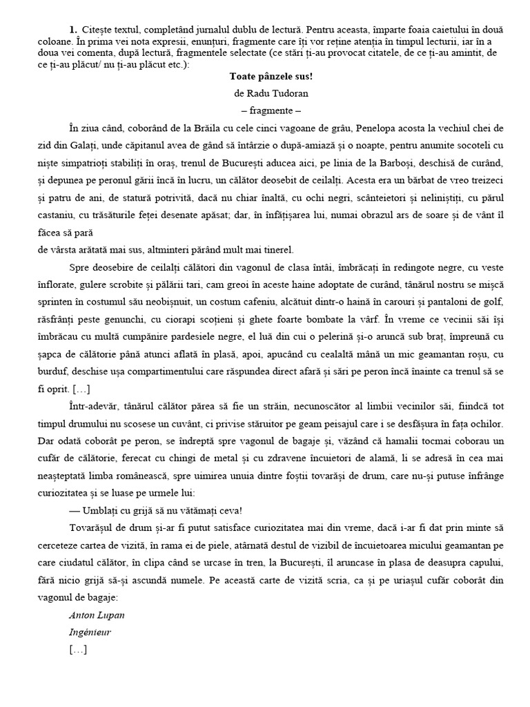 coloane. În prima vei nota expresii, enunțuri, fragmente care îți vor reține atenția în timpul lecturii, iar în a