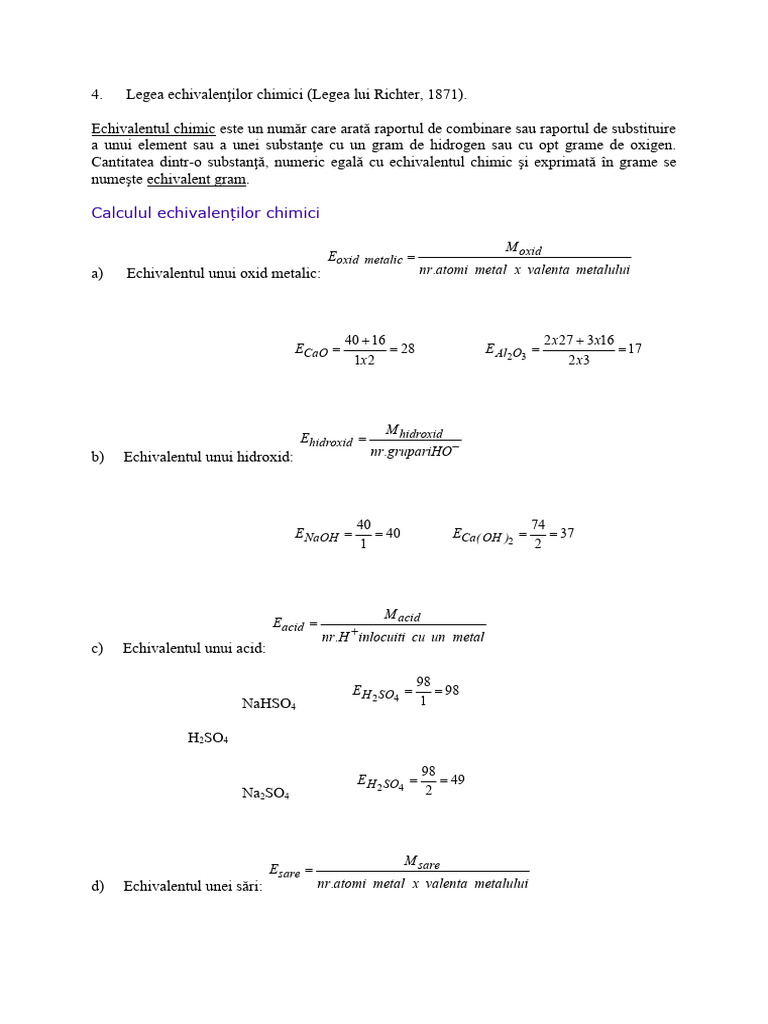 4. Legea echivalenţilor chimici (Legea lui Richter, 1871).