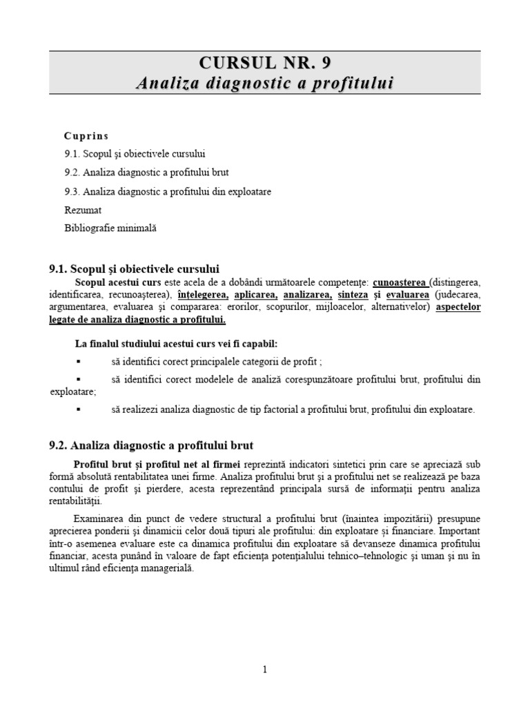legate de analiza diagnostic a profitului.