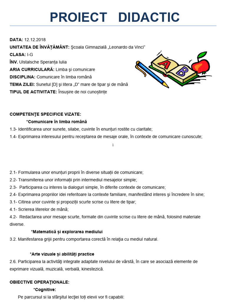 OC1 – să identifice sunetul [d] aflat în diferite poziţii ale cuvintelor;