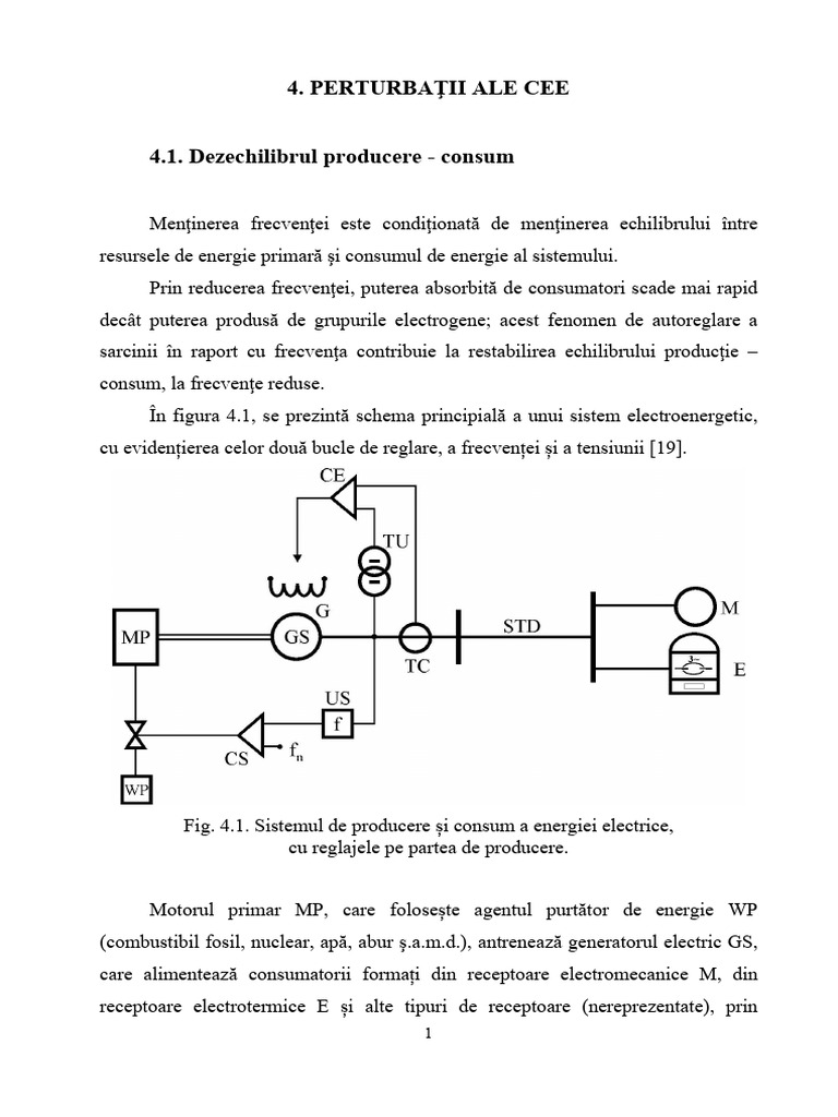 Fig. 4.1. Sistemul de producere și consum a energiei electrice,