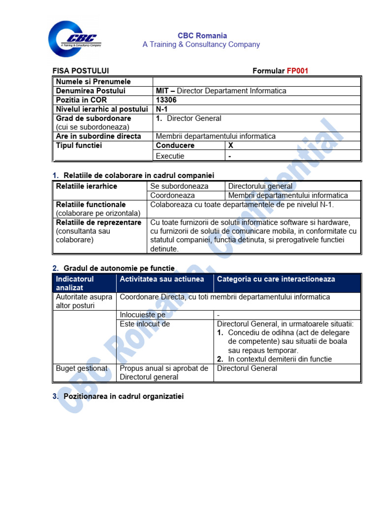 3. Pozitionarea in cadrul organizatiei
