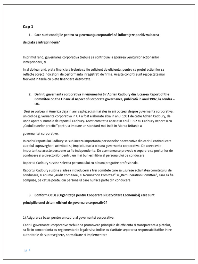 2. Definiţi guvernanţa corporativă în viziunea lui Sir Adrian Cadbury din lucrarea Raport of the